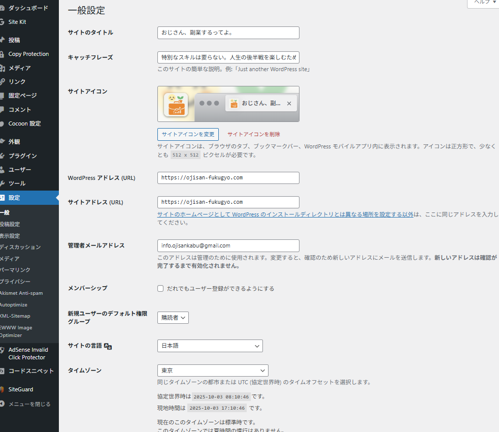 WordPressの「設定 → 一般」には、サイト運営に不可欠な基本情報があります。