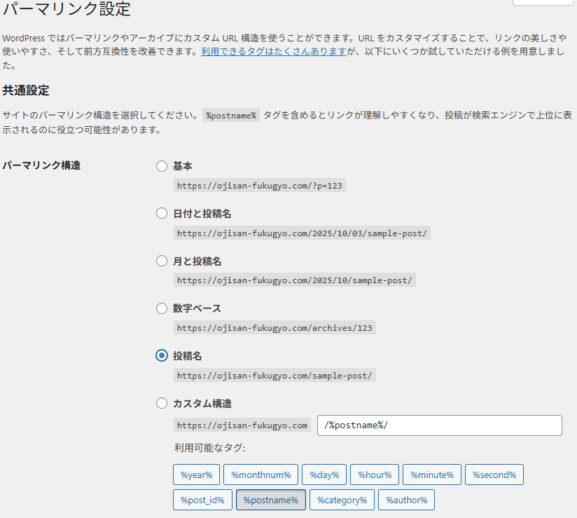 パーマリンクとは、記事ごとのURL構造のことです。