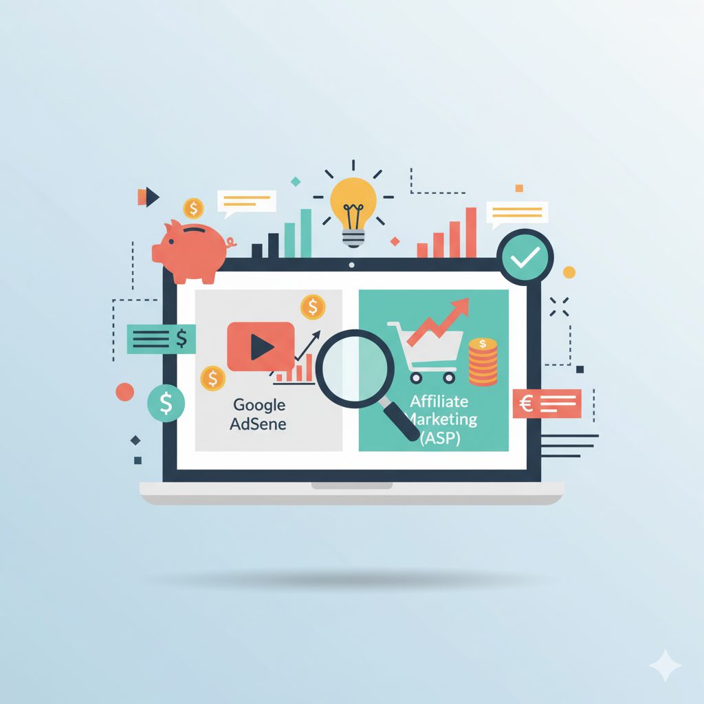 特に、Google AdSense(広告型)とASP(アフィリエイト型)の使い分け、そして案件選定のポイントに焦点を当てています。初心者でも「どこから手をつければいいか」がわかる内容です。